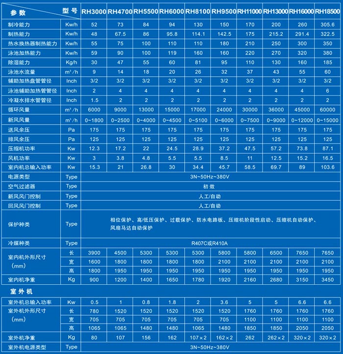 三集一體室內泳池恒溫除濕熱泵 RH系列結構展示: