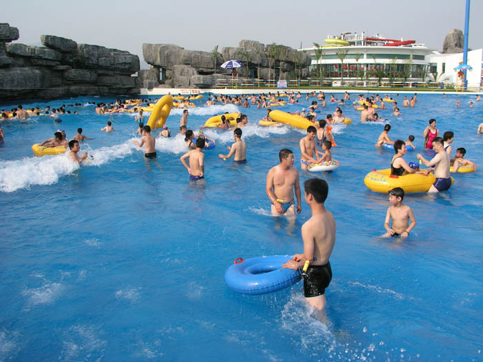 在戲水樂(lè )園中,它在所有水池里一般來(lái)說(shuō)是最大的,同時(shí)也是最創(chuàng )造氣氛的。水面上起伏的層層波浪總是帶給游人陣陣按捺不住的激動(dòng),以致國外一些戲水樂(lè )園僅設置這樣一個(gè)大池就已使游人樂(lè )而忘返了。造浪池池底要設計成斜坡?tīng)?,由淺入深。這樣,讓游人有一個(gè)從觀(guān)浪欣賞、踏浪蹚水,最后暢游其中的過(guò)程,領(lǐng)略到回歸大自然的感受,并且這也有利于波浪的形成與發(fā)展。造浪機及波浪發(fā)生口要設置在水池最深處。造浪系統在運作時(shí),其能耗較大,故通常不長(cháng)時(shí)間持續造浪。一般是每小時(shí)造浪1-2次,每次10-15分鐘長(cháng)。